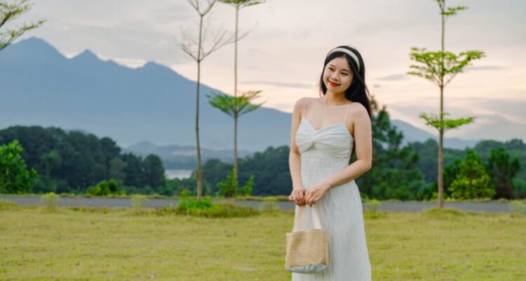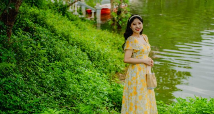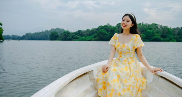 Ý tưởng: Thả dáng trên chiếc thuyền nhỏ giữa hồ, hoặc đứng trên bãi cỏ ven hồ với phông nền là mặt nước lấp lánh ánh nắng.